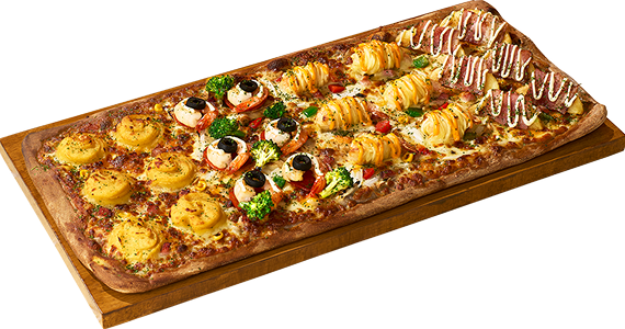 우리 쌀, 보리, 조, 밀, 검은깨 등 다섯 가지 국산 곡물로 만든 웰빙 수제 도우를 사용해 더욱 쫀득하고 고소한 맛을 자랑합니다.